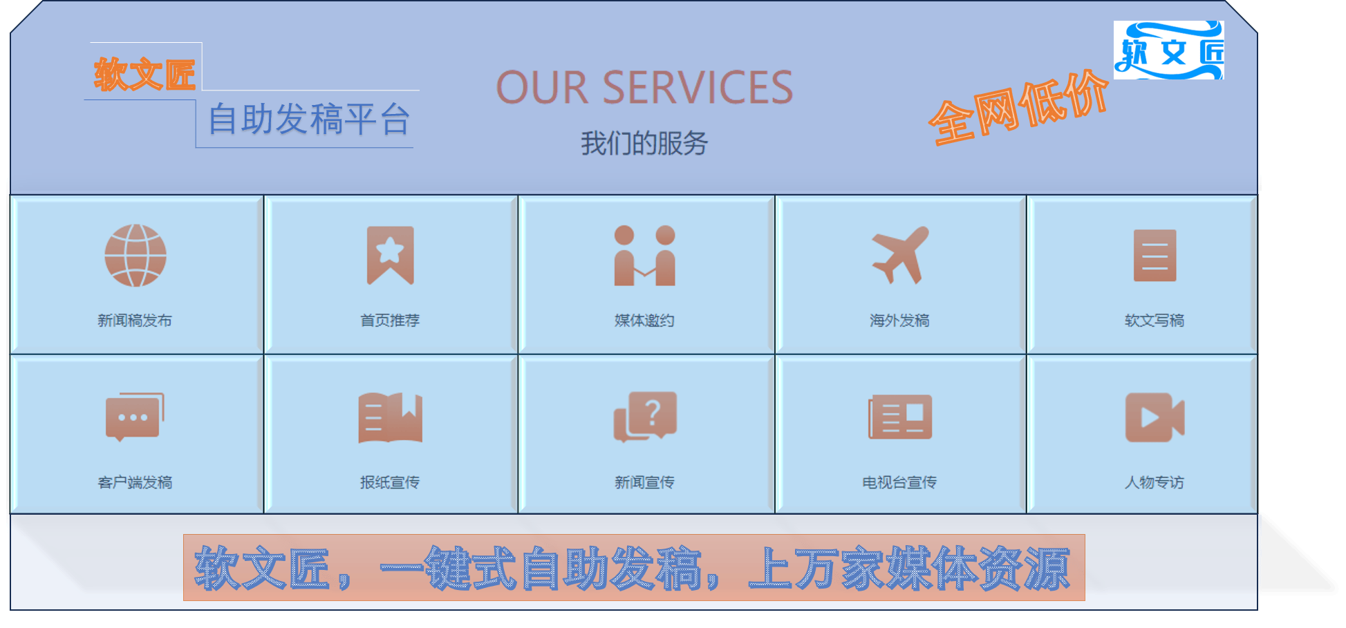 提拔品牌的公信力和专业度。开铭收集旗下发稿平台软文匠认为,将品牌、产物劣势融入此中,通过数据阐发东西,建立内容矩阵,推出从题明显的宣传勾当!