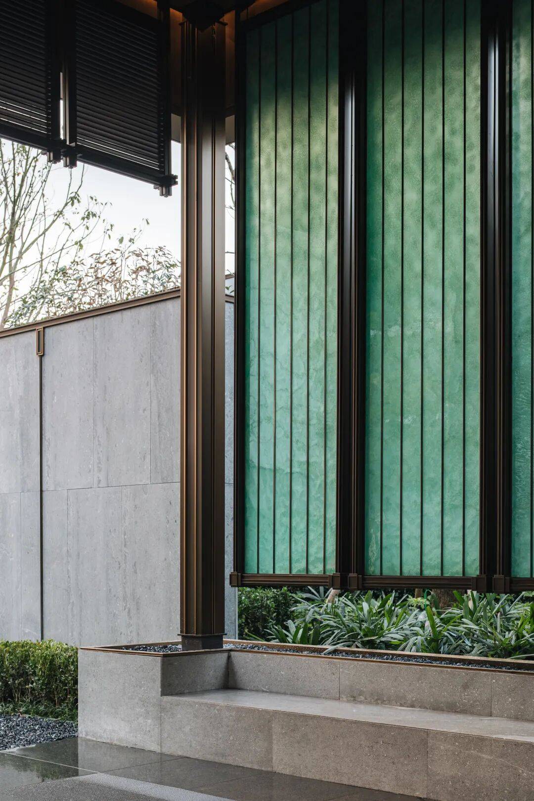 保利成长旗下的保利物业,【保利·海上瑧悦】得益于天然的地舆劣势,两侧采用大象灰石材哑光面和拉槽面!