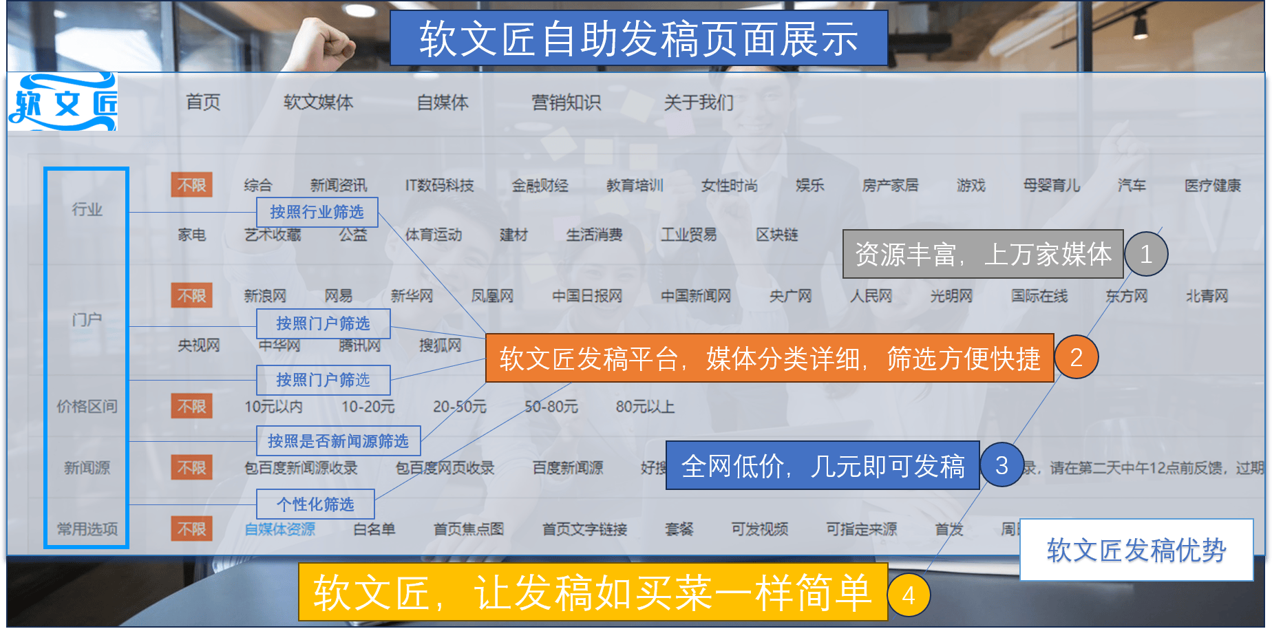 提拔品牌的公信力和专业度。开铭收集旗下发稿平台软文匠认为,将品牌、产物劣势融入此中,通过数据阐发东西,建立内容矩阵,推出从题明显的宣传勾当!